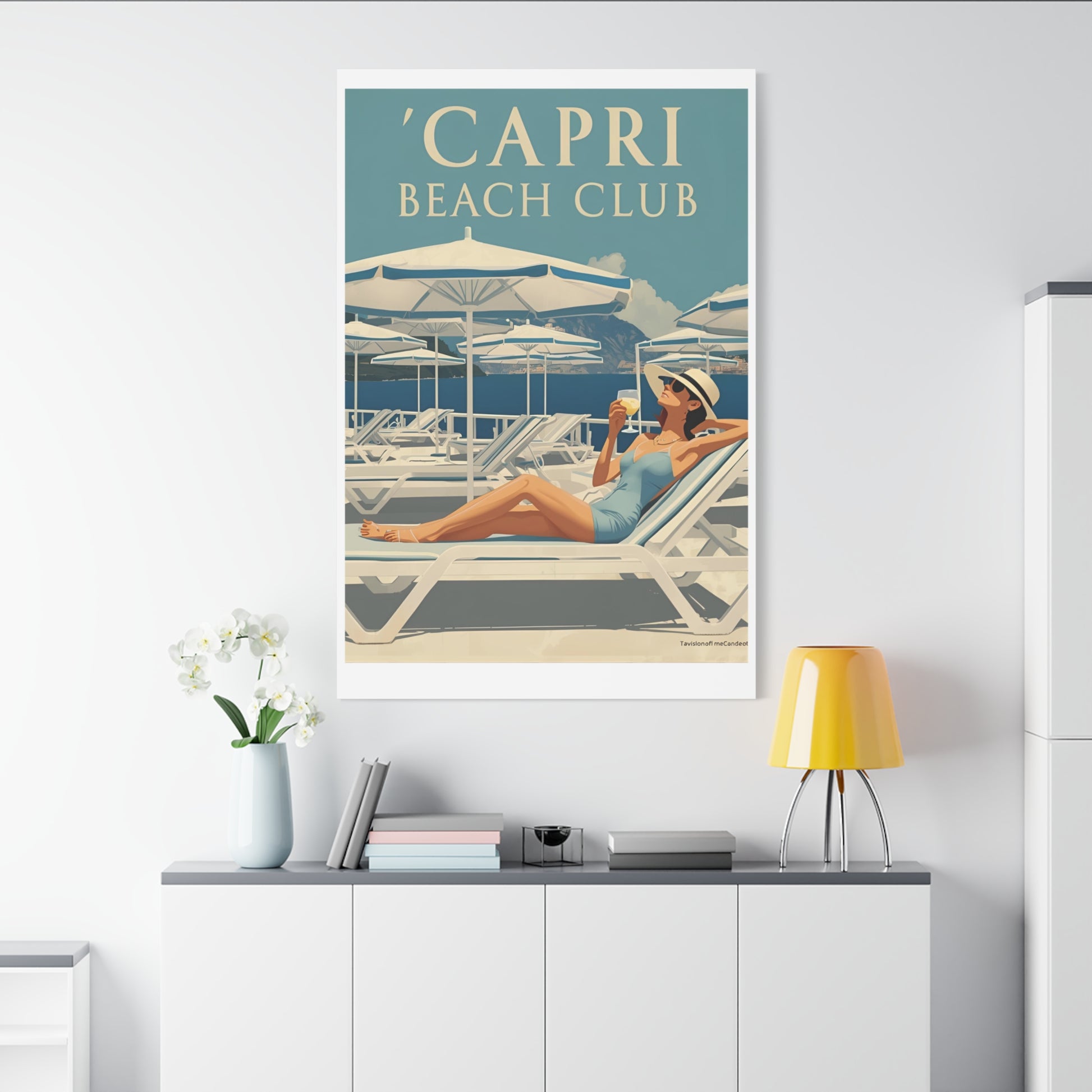 Capri Beach Club Retro-Leinwanddruck – Dekorative Wanddekoration