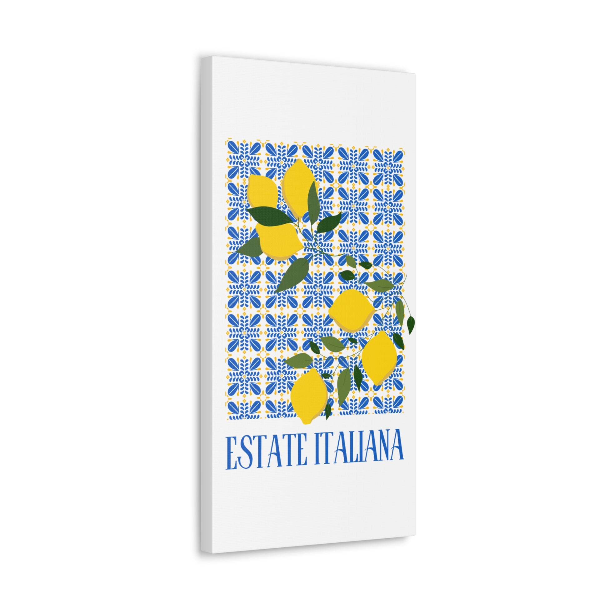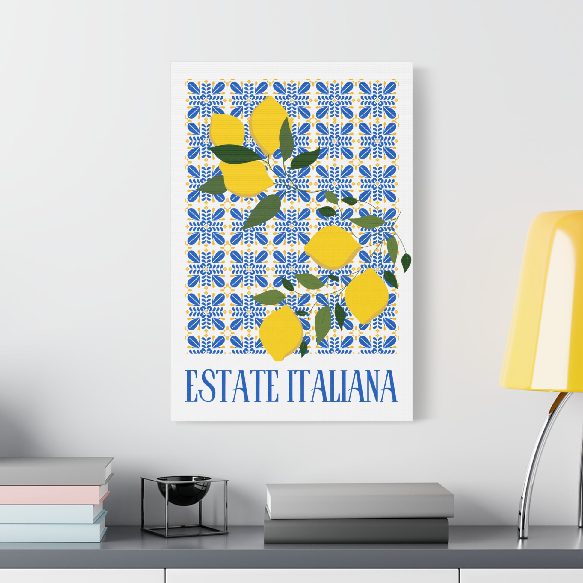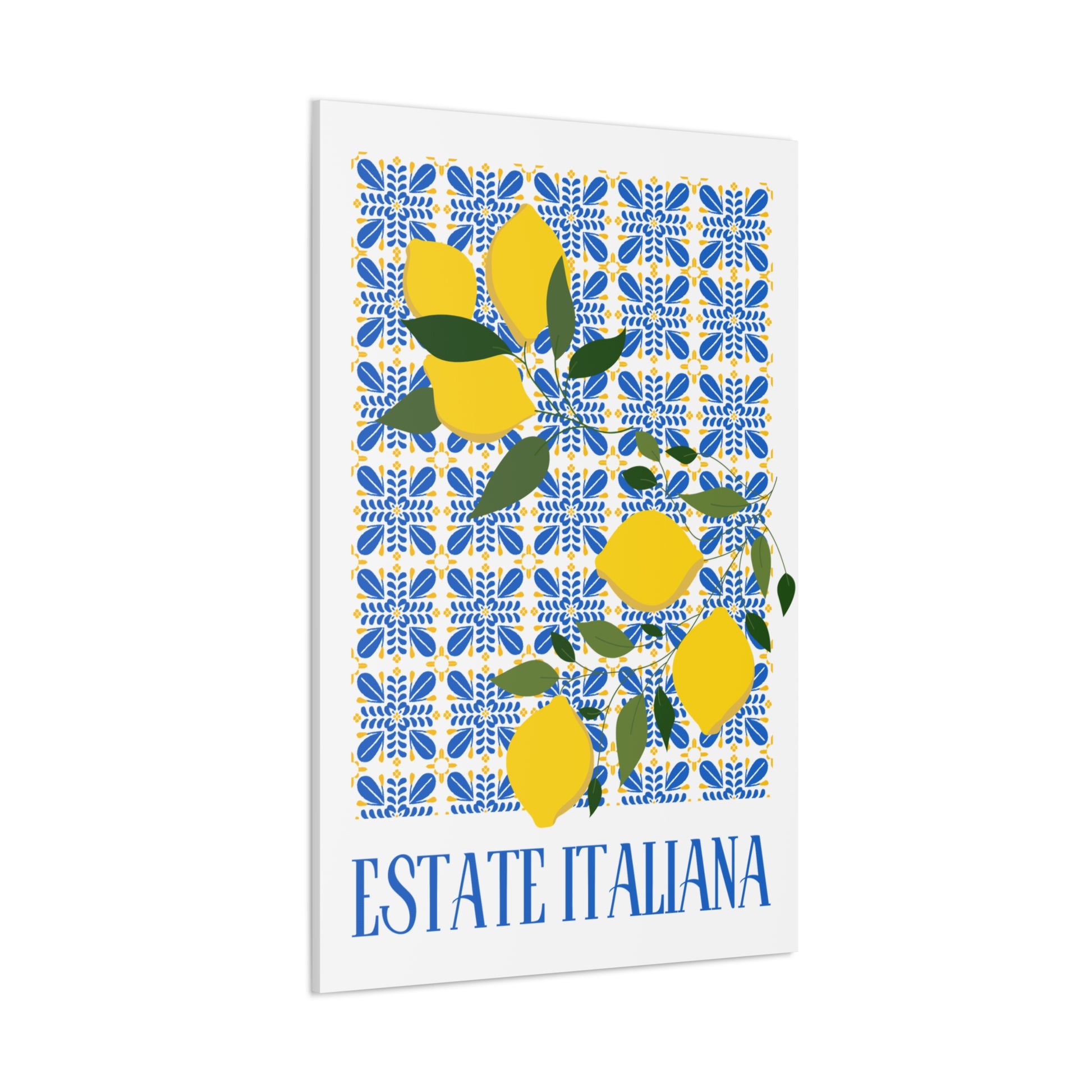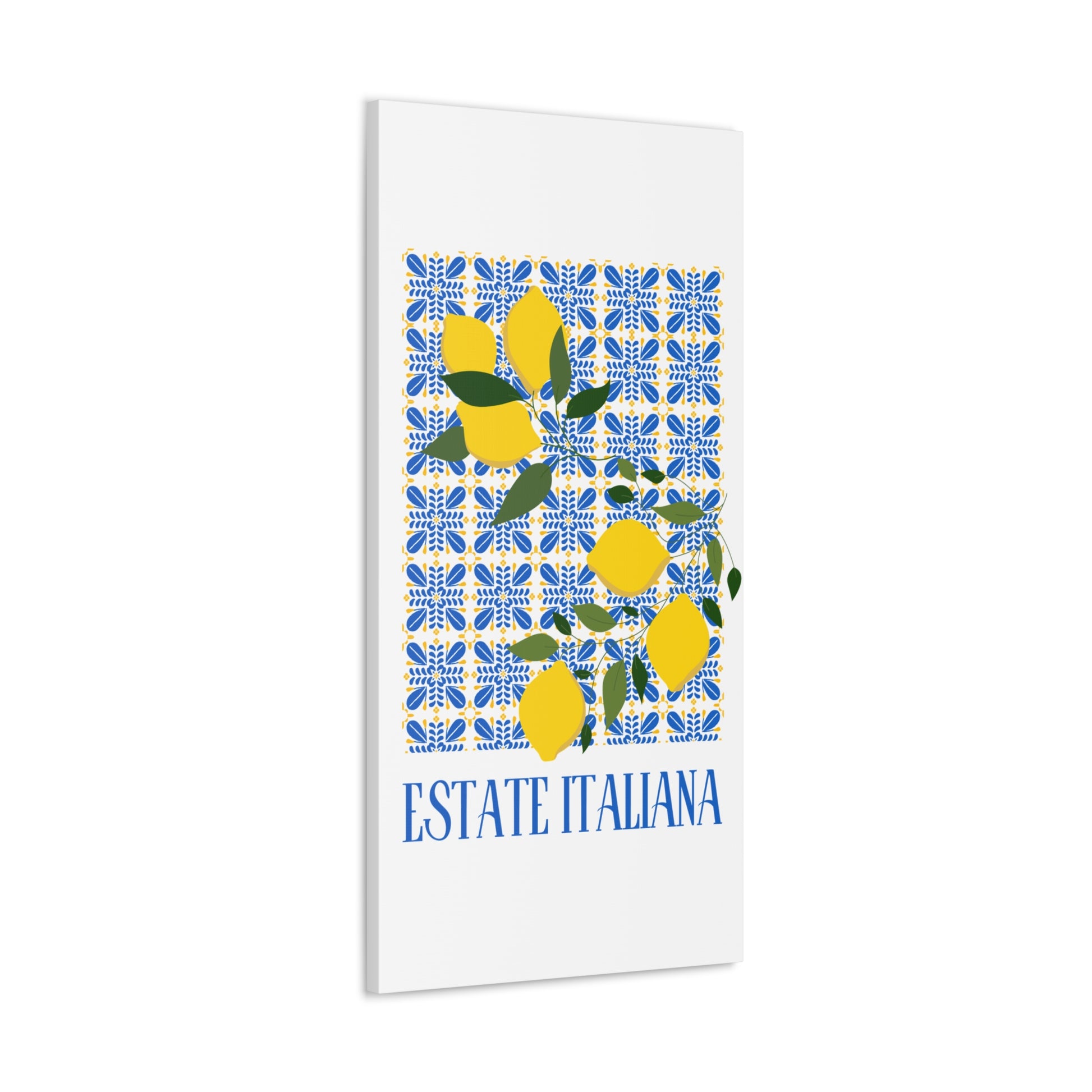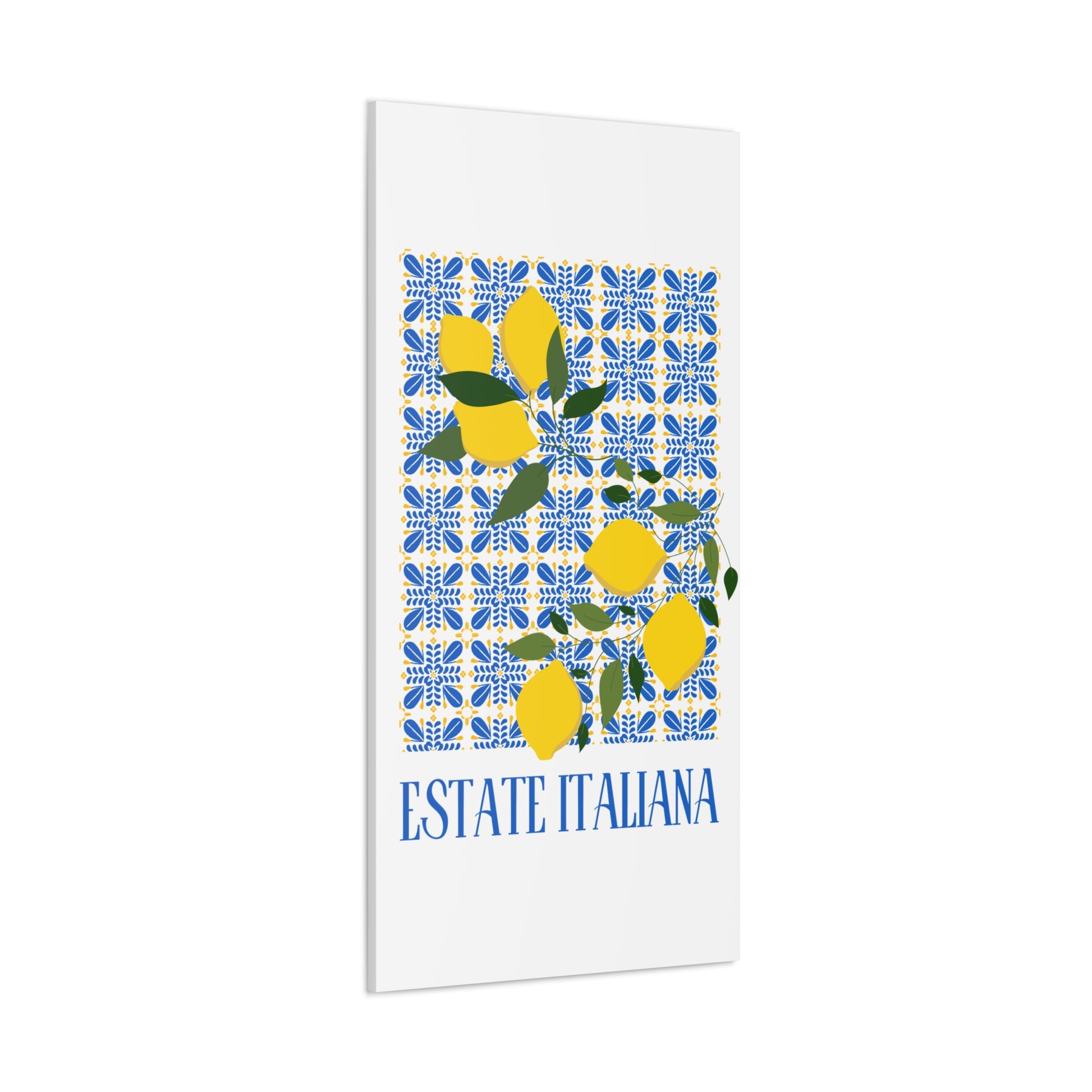Estate Italiana – Italienischer Sommer – Leinwanddruck – mit dekorativen Zitronen und Majolika-Fliesen – Dekorative Wanddekoration