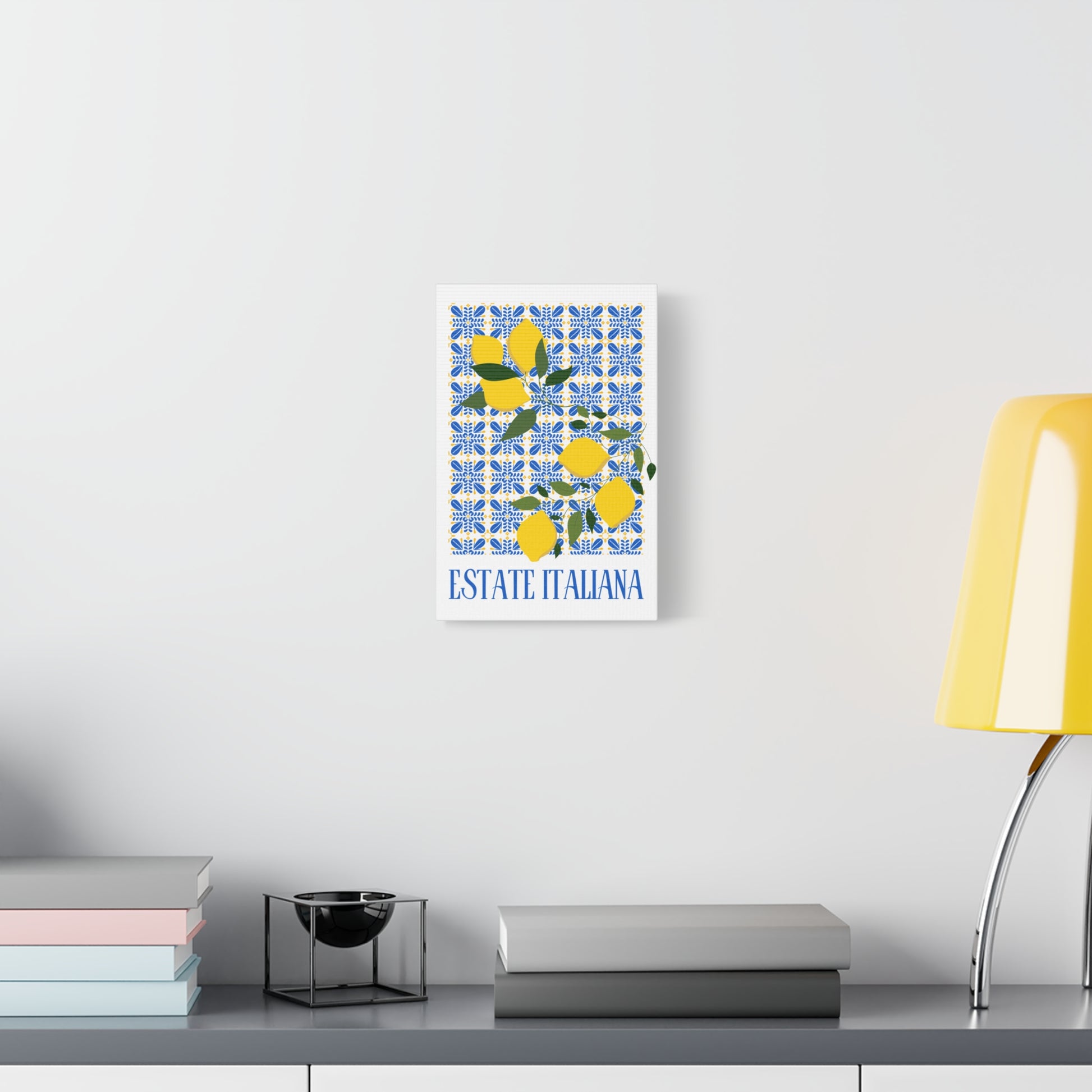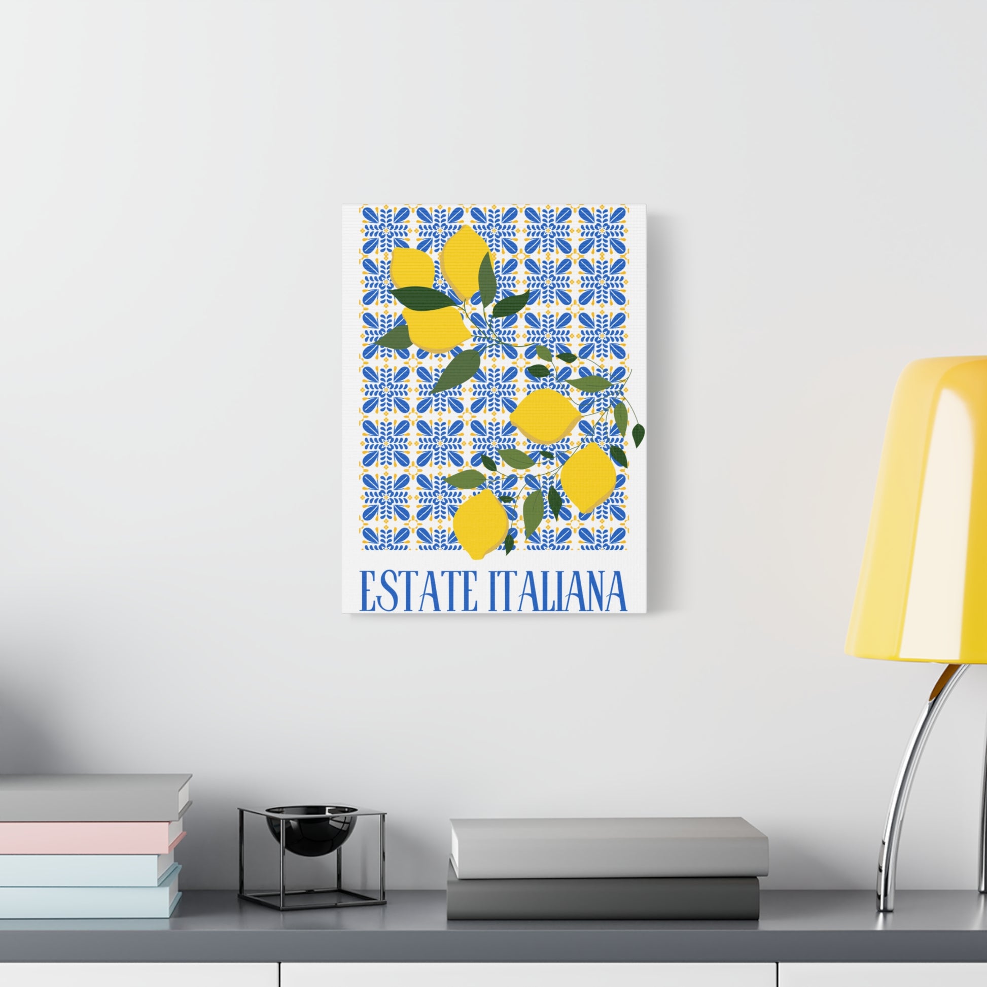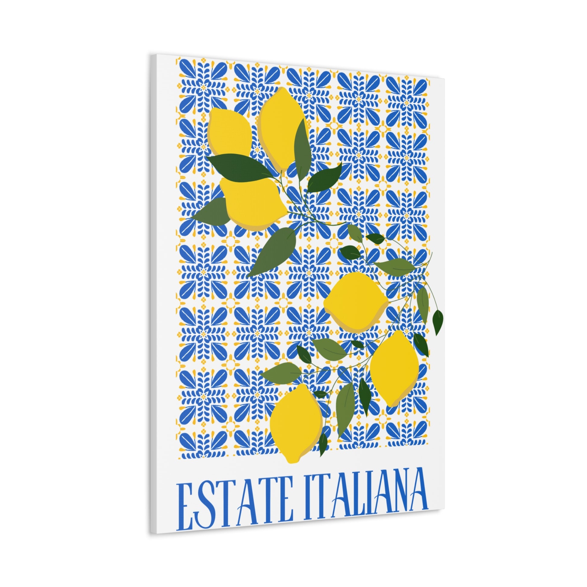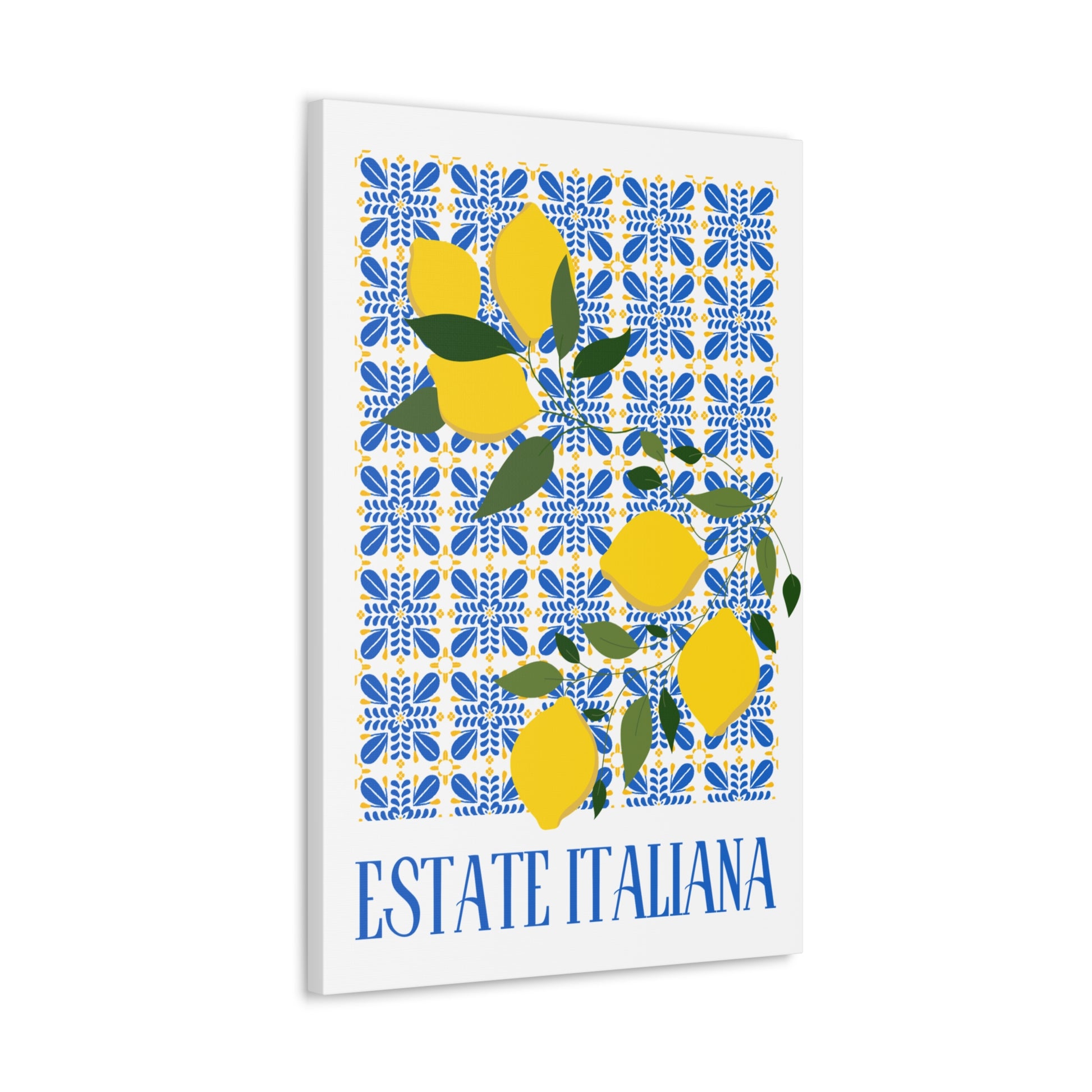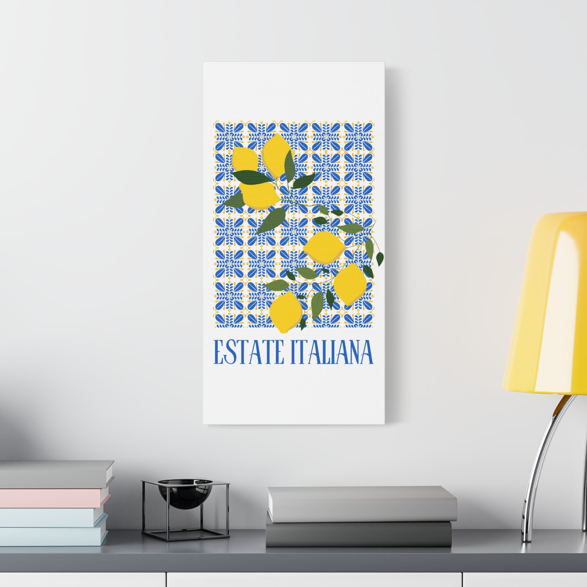 Estate Italiana – Italienischer Sommer – Leinwanddruck – mit dekorativen Zitronen und Majolika-Fliesen – Dekorative Wanddekoration