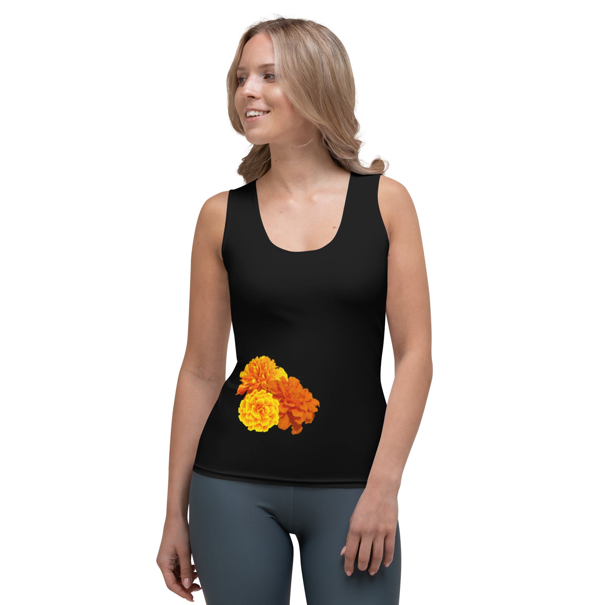 Schwarzes Sommer-Tanktop mit einzelnem Blumenmuster