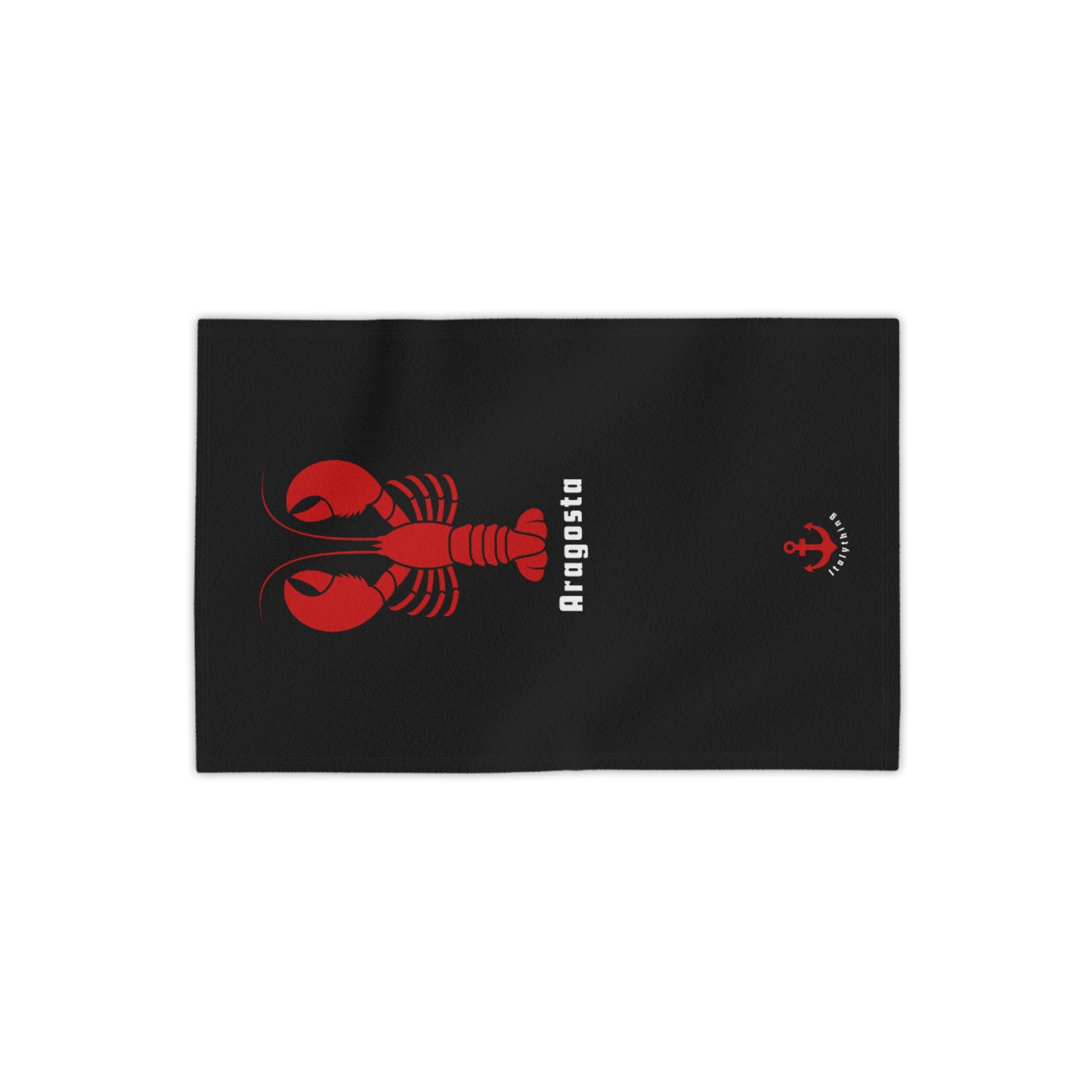 Black beach towel with a bold red lobster graphic and simple white lettering. The design feels salty and a little retro—like a seaside crest or a sailor’s badge. It sits quietly on hot sand or a damp dock, bringing a clean, graphic punch without shouting. Lightweight and quick-drying, it slips easily into a daypack for sunrise swims, backyard cookouts, or weekend boat runs. For someone who loves coastal rhythms and understated nautical style, this towel reads like a small, confident declaration: you live for tides, fresh shells, and evenings that end with the sound of gulls.
